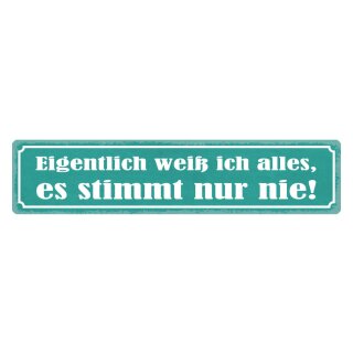 Blechschild "Weiß alles, stimmt nur nie" 46 x 10 cm Dekoschild Wissen