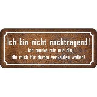 Schild Spruch "nicht nachtragend, für dumm verkaufen wollen" 27 x 10 cm Blechschild